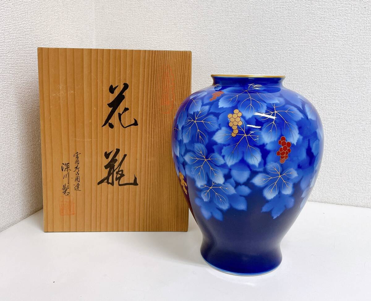- 【~深川製磁 深川製磁 花瓶 ~】青/花器/生花/共箱入/インテリア/全長約27㎝/T73-255
