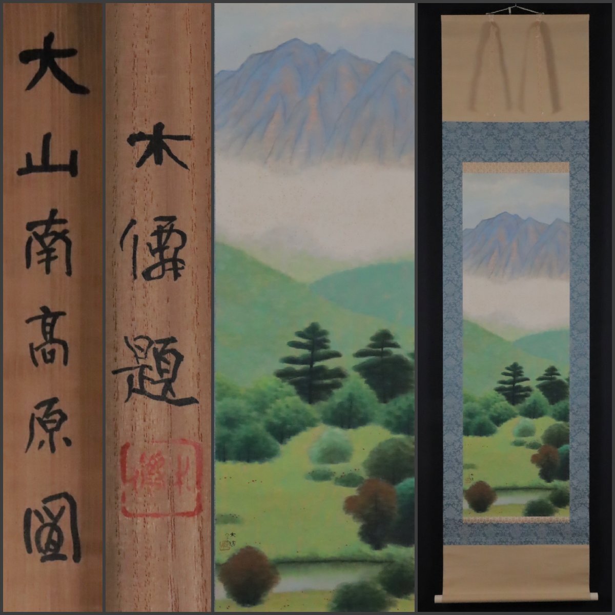 - 【模写】吉】12128 勝谷木僊 大山南高原図 共箱 鳥取県 伯耆町 米子市の人 西山翠嶂師事 茶掛け 茶道具 掛軸 掛け軸 骨董品