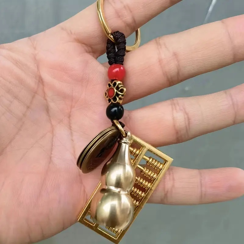 - 開運幸運のチャームキーホルダー中国の古代貨幣とアバクスデザイン、瓢箪バッグの装飾、富と健康を引き付ける-理想的な物です人気あります