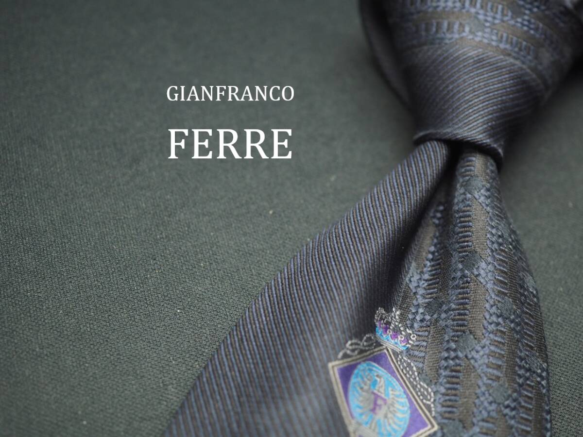 > 美品【GIANFRANCO FERRE ジャンフランコフェレ】 D1743 ネイビーブラック系 SILK ブランド ネクタイ 古着 良品