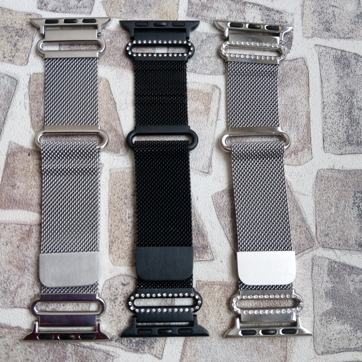- 【100円スタート】アップルウォッチ 互換 バンド 替えベルト ステンレス 3色 無段階調整 シルバー ブラック ラインストーン