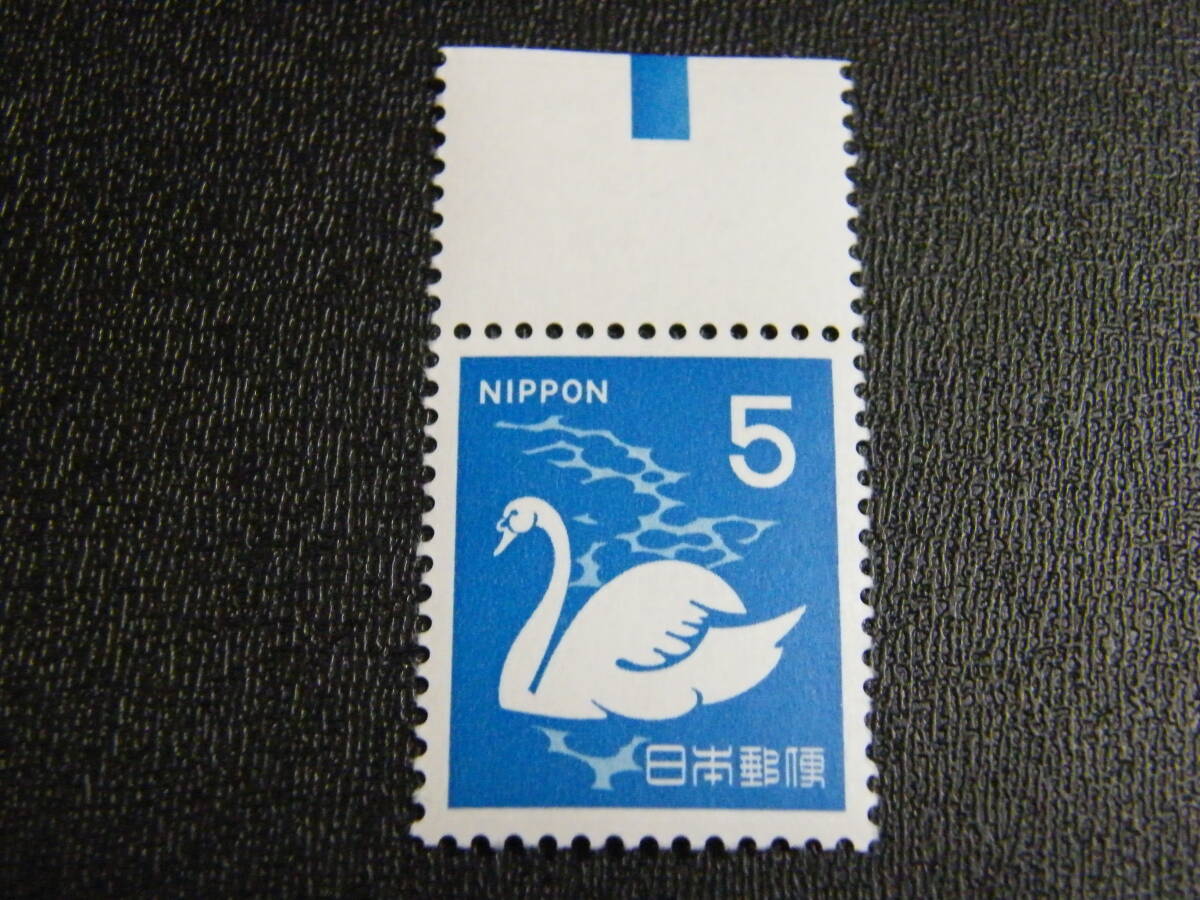 - コブハクチョウ 5円 カラーマーク上 綴じ穴無 未使用 1967年シリーズ(CM付)