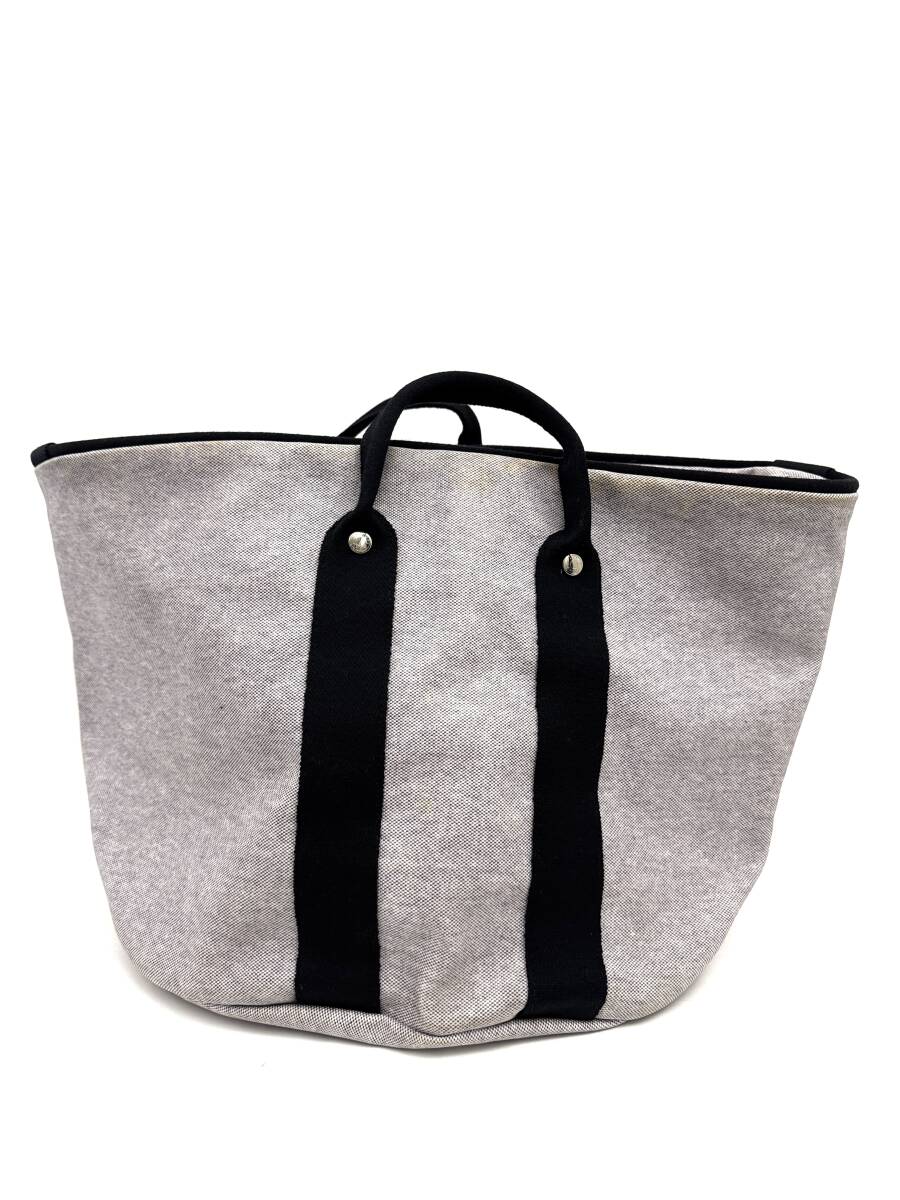 - 7C2301【本物保証】エルメス サック ア ビシェット バケット バケツ型 ラージ トート ハンド バッグ キャンバス グレー ブラック HERMES