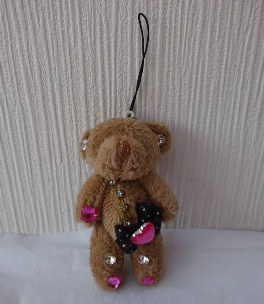 - ストラップ くま キーホルダー バッグチャーム テディベア ぬいぐるみ キラキラ (小)