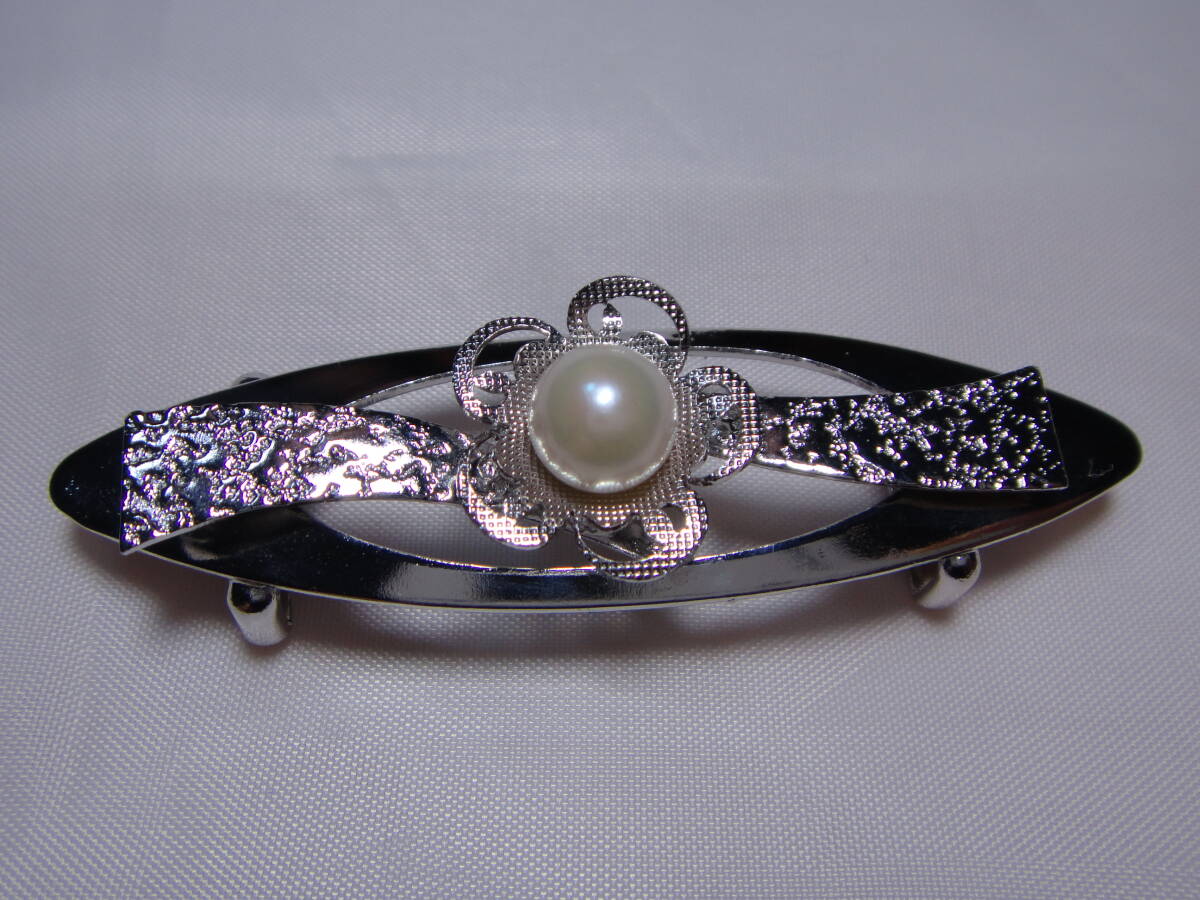 - アコヤ真珠 本真珠 帯留め 約7.2㎜玉 ツヤテリ良 一輪花デザイン ヴィンテージ 和装小物 Y526