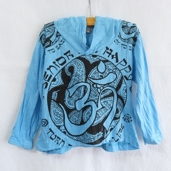 > 〓 シミ有り 〓 新品 〓 キッズ パーカー 〓 エスニック アジアン フェス 子供服 水色 オーム オーン 処分 〓k034