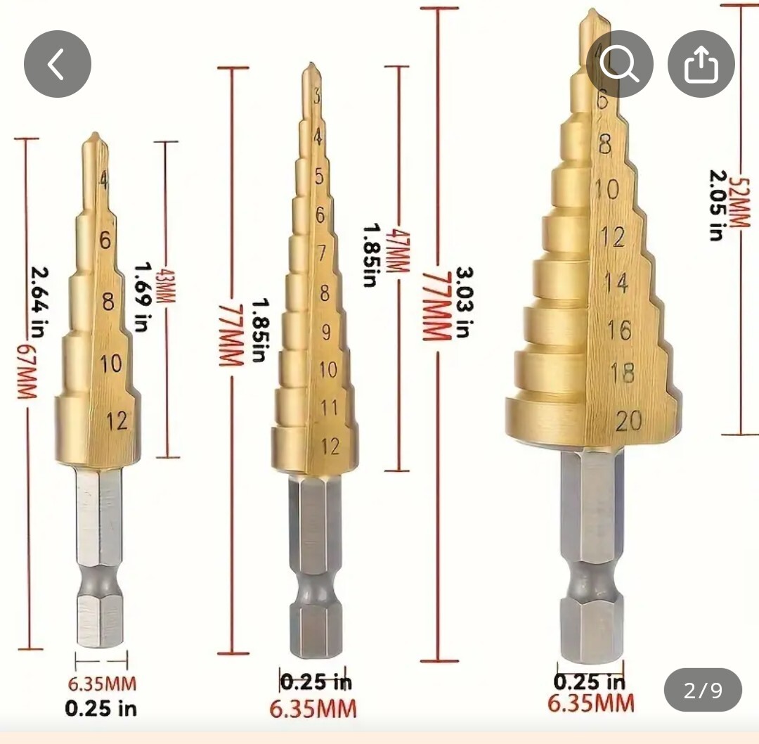 - チタンコーティング ステップ.ドリルビット 3本 送料無料