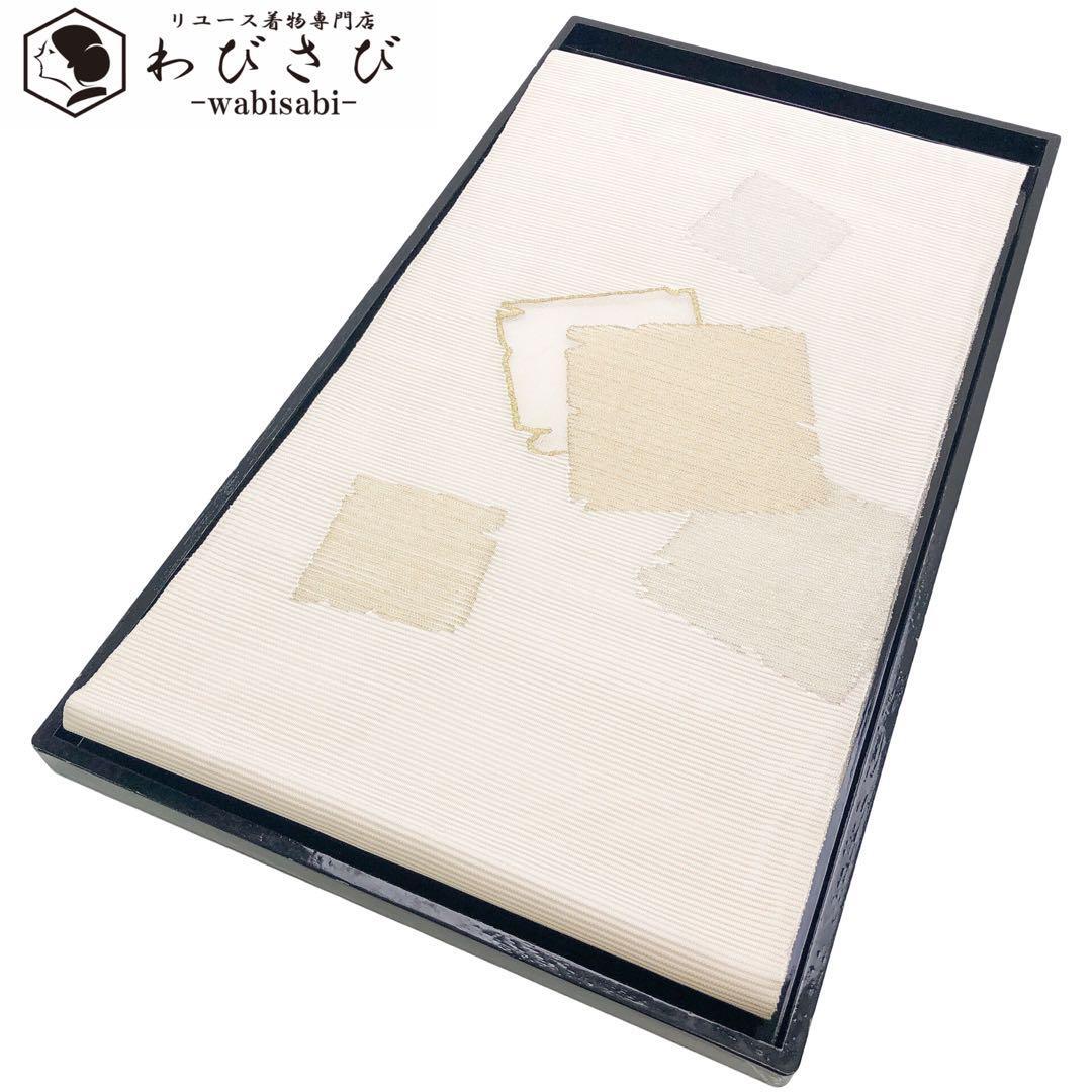 > 夏帯 袋帯 絽 四角模様 金銀糸 生成色 O-4883 着物 きもの kimono 和服 和装 中古 リサイクル着物 【送料無料】