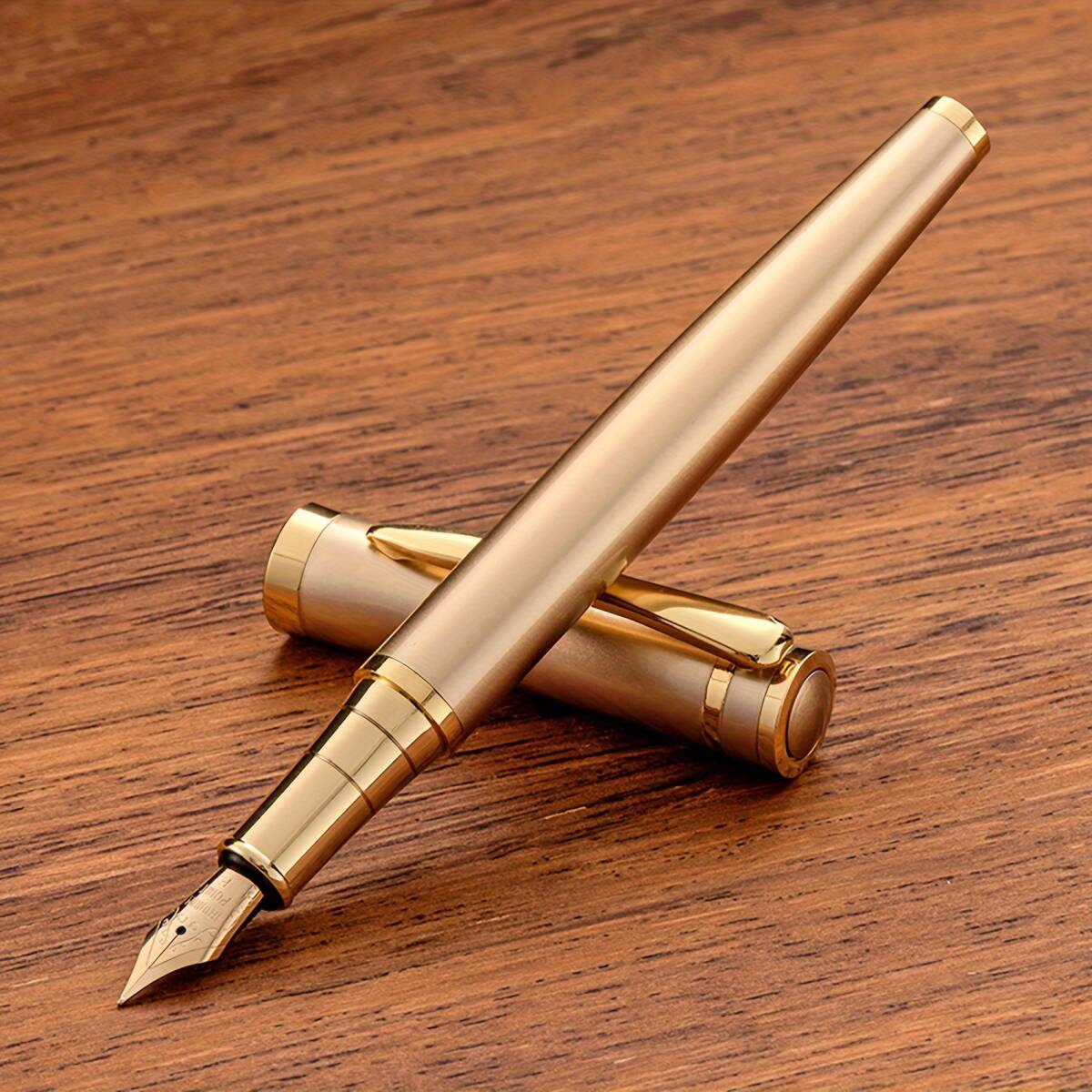 - 万年筆 おしゃれ ゴールド 金色 金属 ステンレス 13.8cm 中字 39g シンプル 高級感 プレゼント ギフト 書きやすい 普段使い ビジネス t5557
