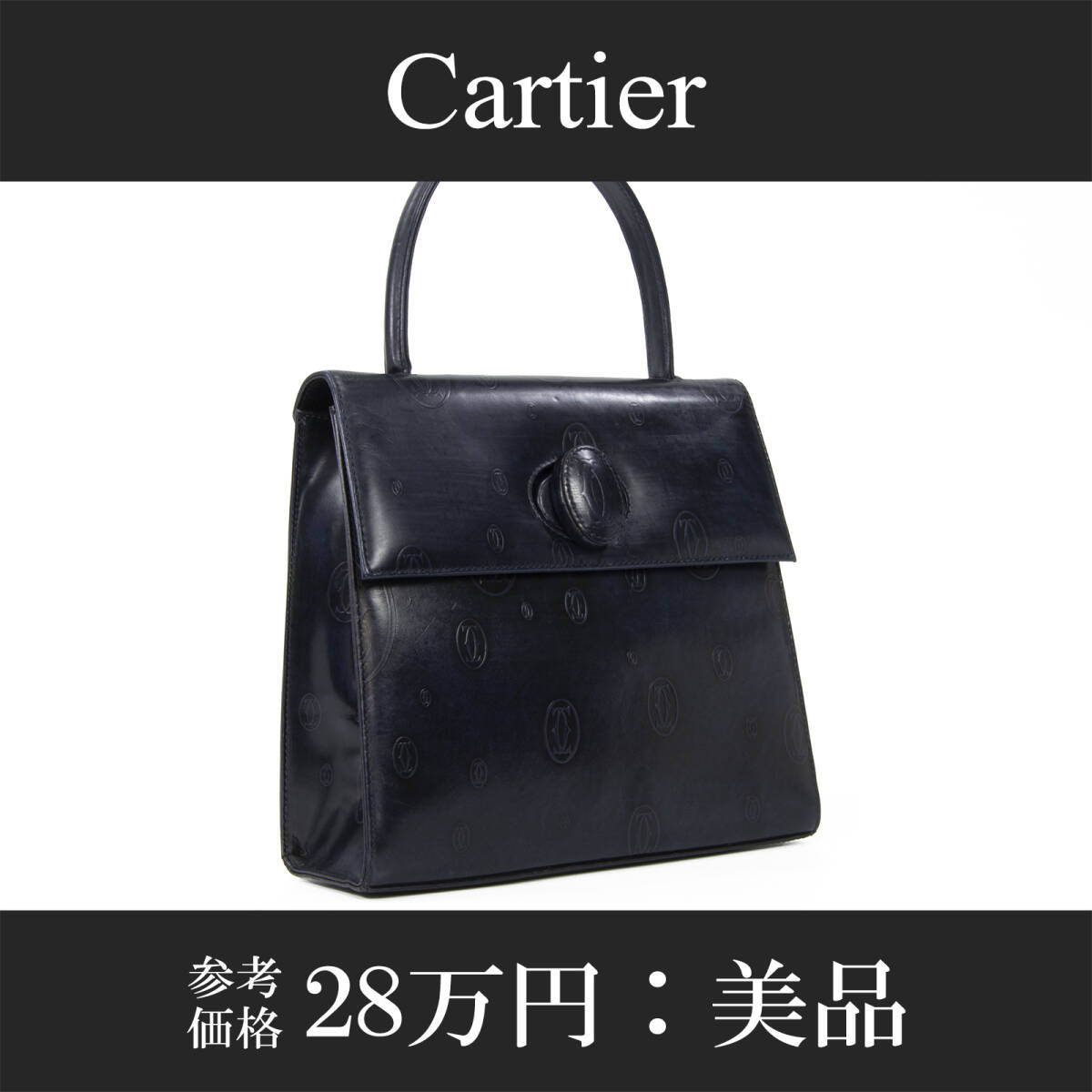 - 本物 送料無料 カルティエ ハンドバッグ レディース ハッピーバースデー 青 ネイビーブルー ロゴ マーク 本革 レザー 綺麗 鞄 バック A822