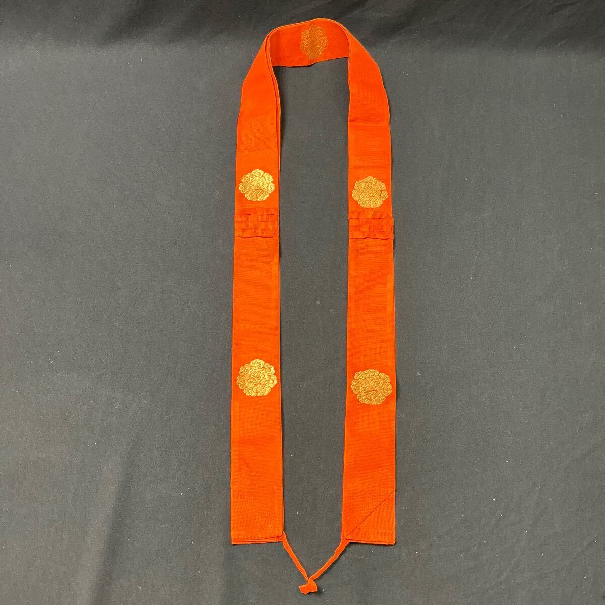 - 【A990】送無 美品 東寺派 折五條袈裟 絹 緋色 夏用 紗地 絽 雲紋 金糸刺繍 法衣 法要 装束 着物 僧侶 お坊さん