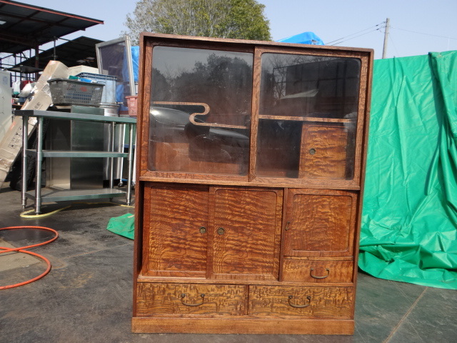 - H5220 茨城県常総市引き取り 和風 飾り棚 茶箪笥 食器棚 古家具 昭和レトロ アンティーク 高さ96cmx広さ74cmx深さ28cm