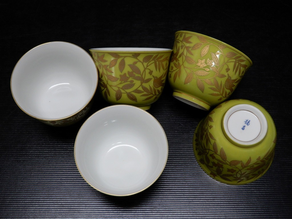 > ●たち吉 萌葱金彩 お茶呑茶碗 5客セット 美濃焼 汲出し湯呑 湯飲み茶わん 橘吉 金彩 和食器 来客用 湯呑●