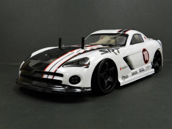 > ☆スペアボディー付☆ 2.4GHz 1/10 ドリフトラジコンカー ダッヂバイパータイプ 白 ターボ機能付き・塗装済み完成品・フルセット】