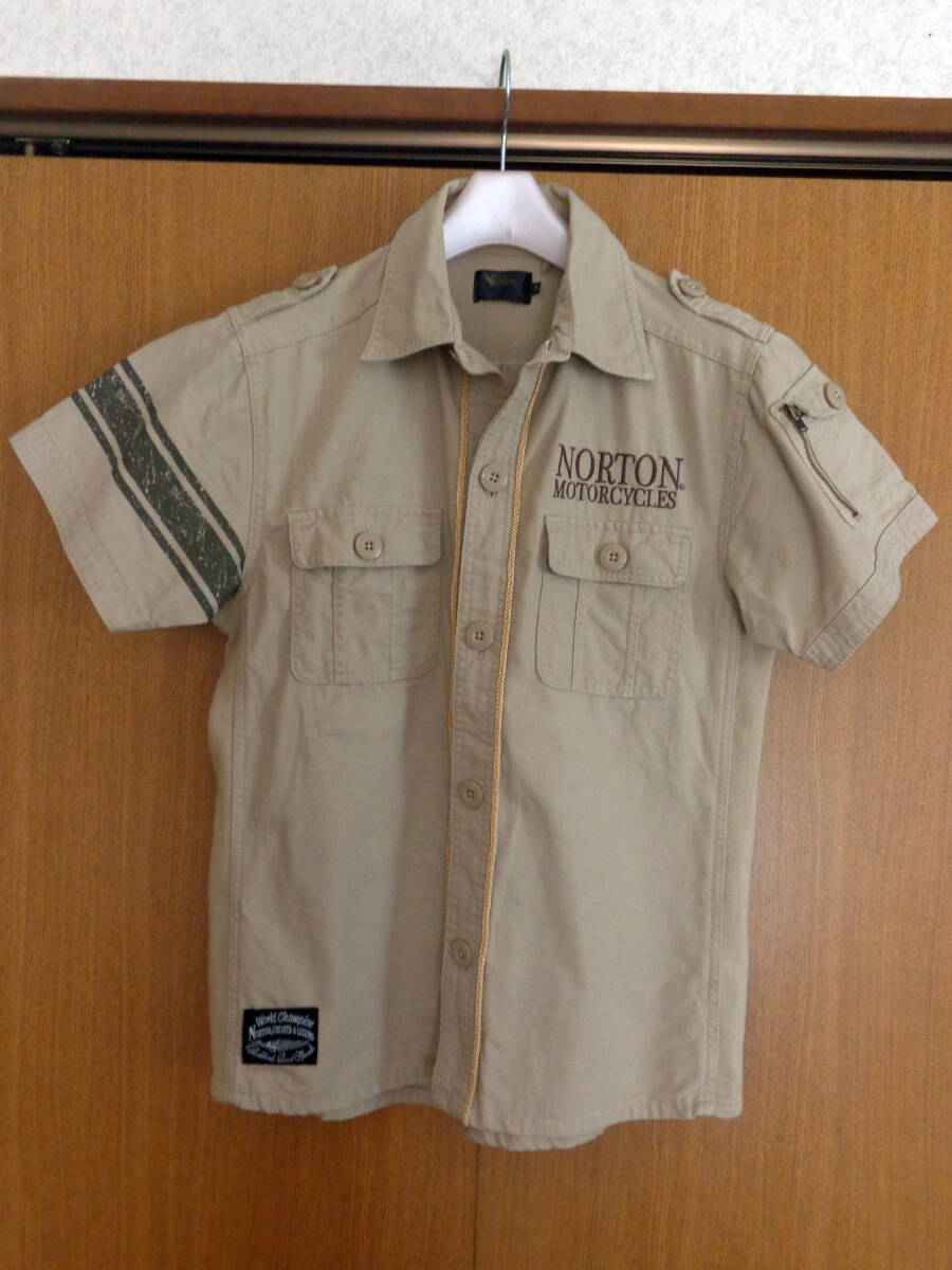 - Norton★ノートン 半袖シャツ ワーク 刺繍 ロゴ☆ベージュ系 Mサイズ 送料¥430♪