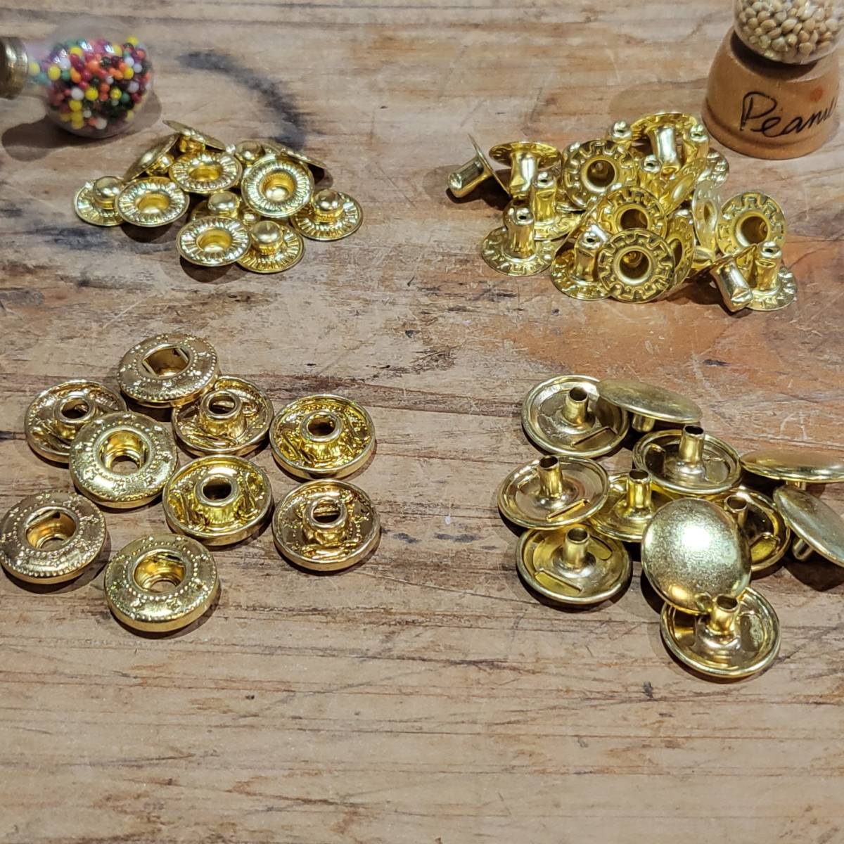 - レザークラフト 真鍮 スナップボタン (頭15mm) 10個セット+予備1個セット
