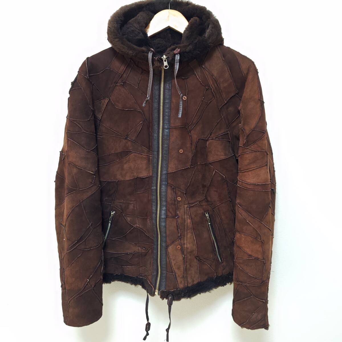 - 極上!!ムートン◎【purete】ピュルテ パッチワーク 羊毛革 パーカー ジャケット リバーシブル ファー エスキモー ブラウン 茶 S/Y28661j