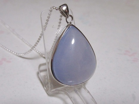 - 思いやりの石!雫型のお洒落なパステルブルーのブルーカルセドニーのシルバーペンダント
