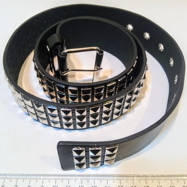 - ベルト パンクスタイルのリベットベルト,ステンレス鋼のバックル 四角いピラミッドリベット装飾,PUパネル素材, 黒 ★鄭11[丨1[丨3