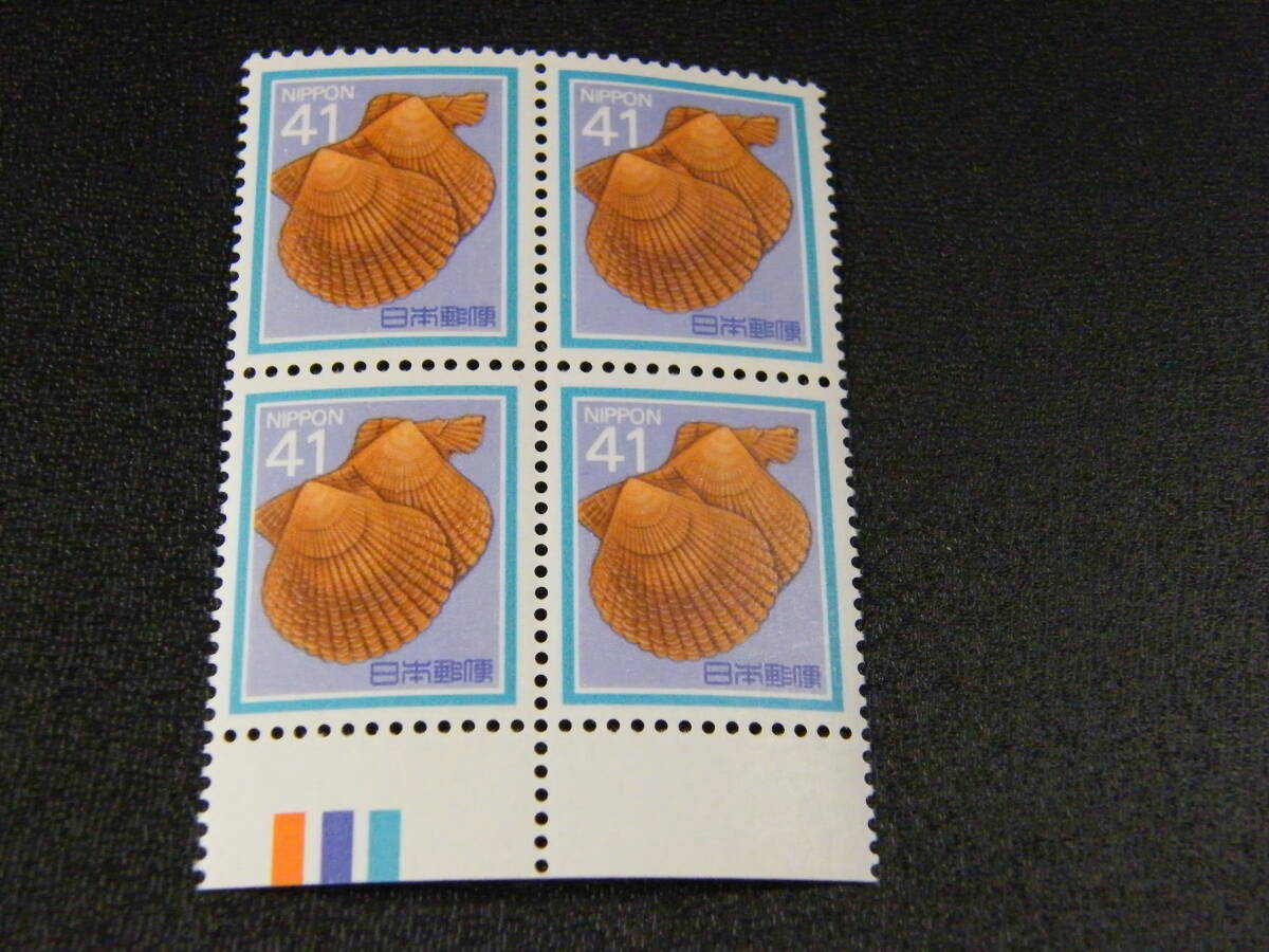 - ヒオウギガイ 41円 カラーマーク下 4枚ブロック 未使用 1989年シリーズ(CM付)