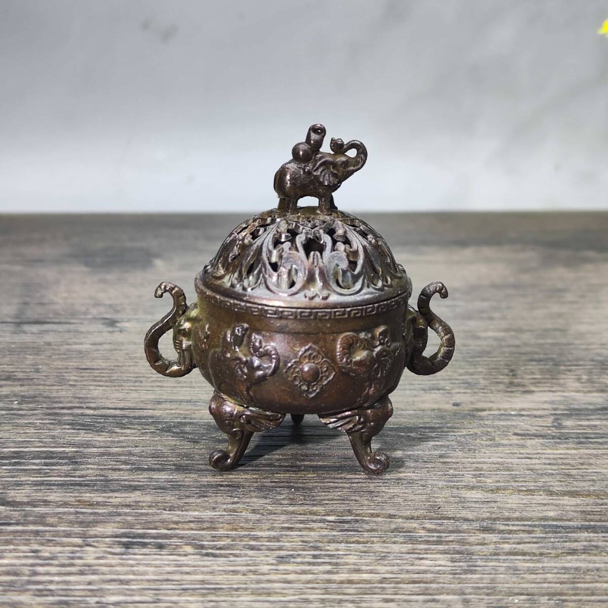- 清 古銅彫 小象 三足香炉 熏香炉 極細工 古賞物 古美味 東洋彫刻 時代物 骨董 中国古美術