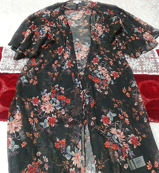 - インド製黒花柄シフォンロングカーディガン羽織ガウン Indian black floral chiffon long cardigan gown