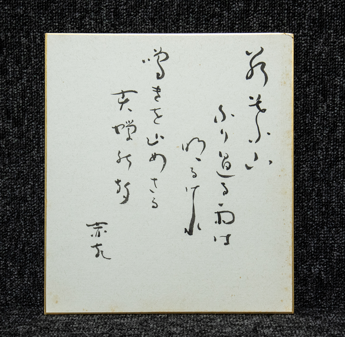 - 色紙ー1653 島木赤彦 「若葉山ふり過る雨は明るけれ鳴きを山めさる春蝉の声」 歌人 アララギ【真作】