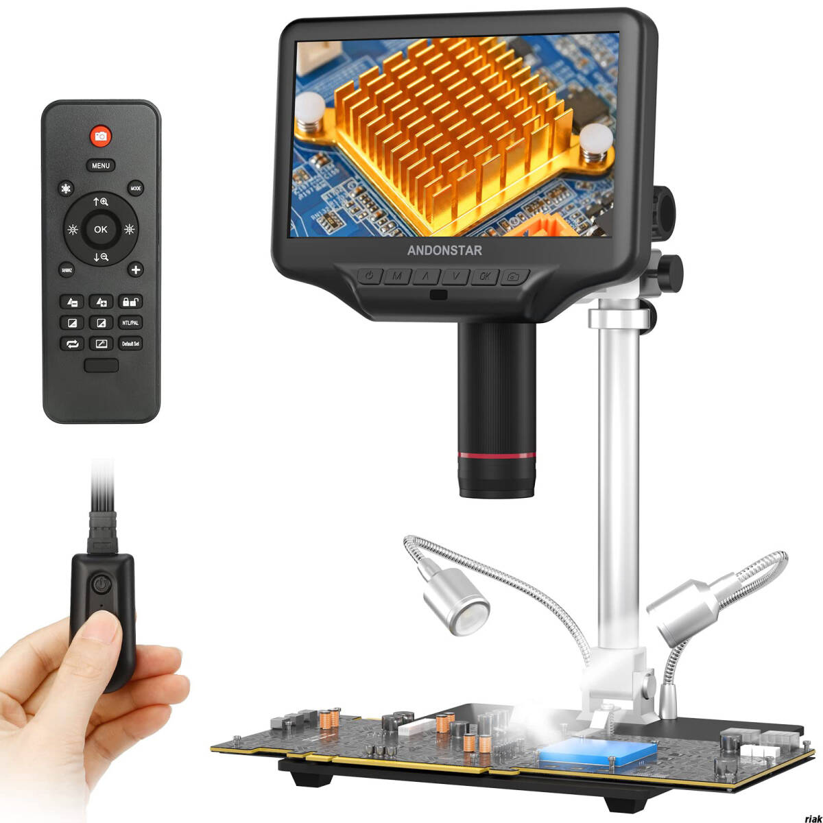 > 【8段階調整可能なLEDライトで最適な明るさを提供】デジタル顕微鏡 HDMI接続対応 DIY 修理作業 初心者 7インチIPSスクリーン