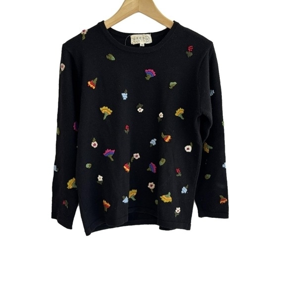 - グレ Gres 長袖セーター/ニット サイズ38 - 黒×カーキ×マルチ 花柄 美品 トップス