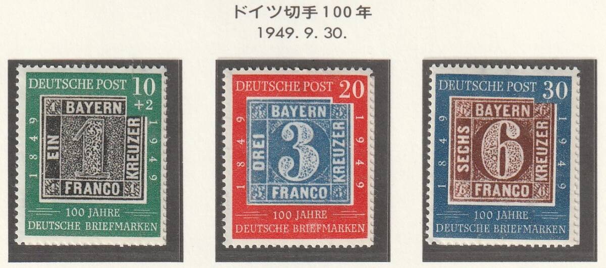 - G004 ドイツ ドイツ切手100年 SCOTTカタログ#667,#668,B309 3種完 未使用 軽いヒンジ跡あり 美品