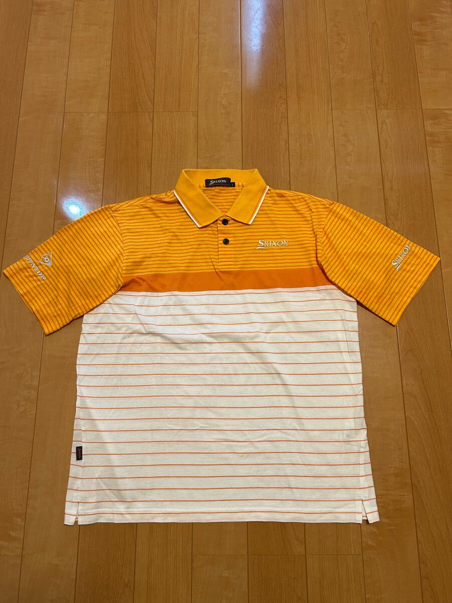 > 良品☆SRIXON/スリクソン・ダンロップ メンズサイズL 速乾性薄手生地.半袖切替マルチボーダーポロシャツ 希少.4面ロゴ刺繍入!&タブ付!