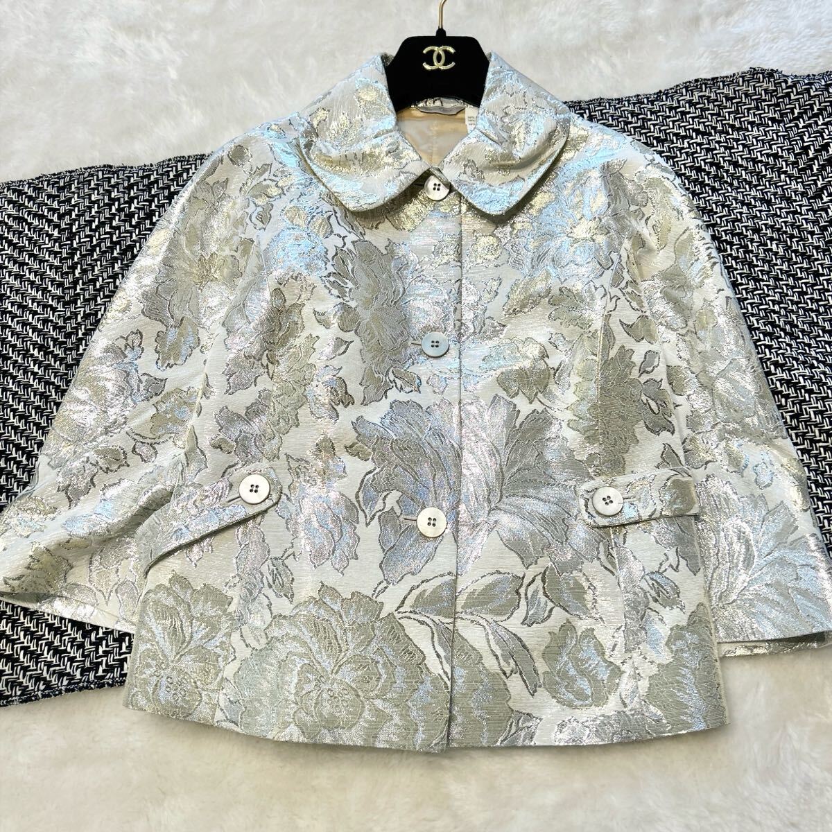- バーニーズニューヨーク 光沢 ラメ ジャケット イタリア製 38 未使用 M シャンパンゴールド エレガント 高級感