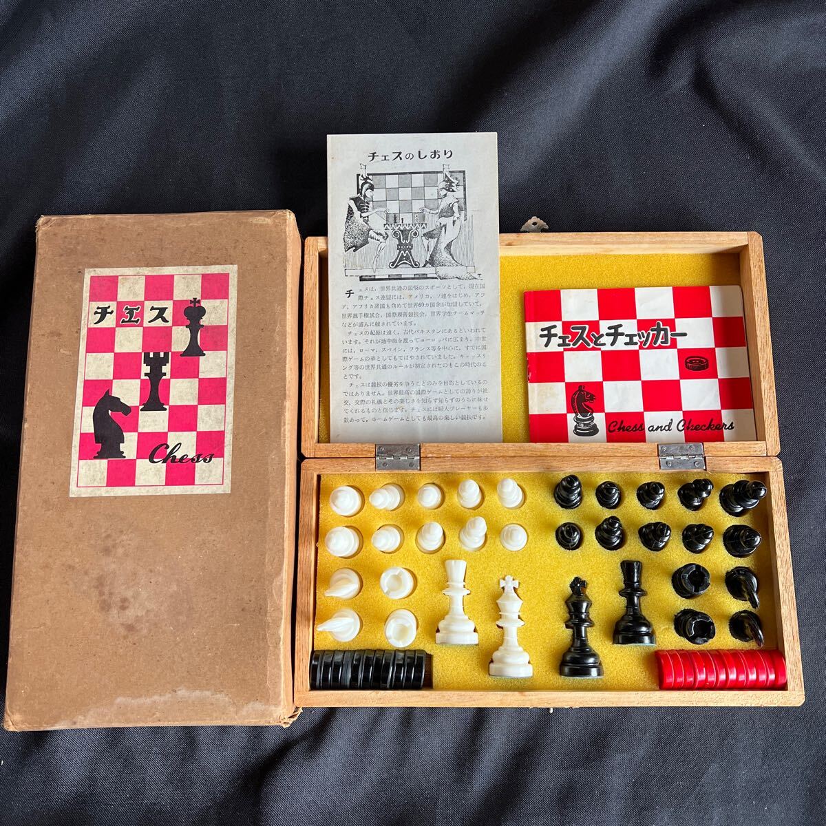 - T4-1-6 レトロ 当時物 はなやま玩具 ゲームのはなやま チェス盤 チェス駒 セット ボードゲーム 中古