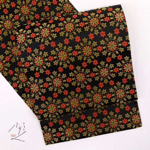 - 【名古屋帯】 煌びやか唐華模様 開き仕立て 黒地 正絹着物 NB12-18
