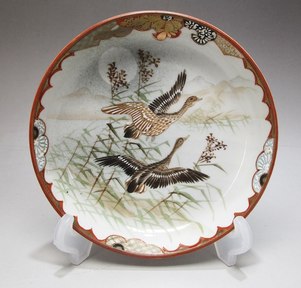 - 《ジャムルK》KKg0401-77◆九谷焼 土井製 月下飛雁図 小皿 豆皿 直径:12cm