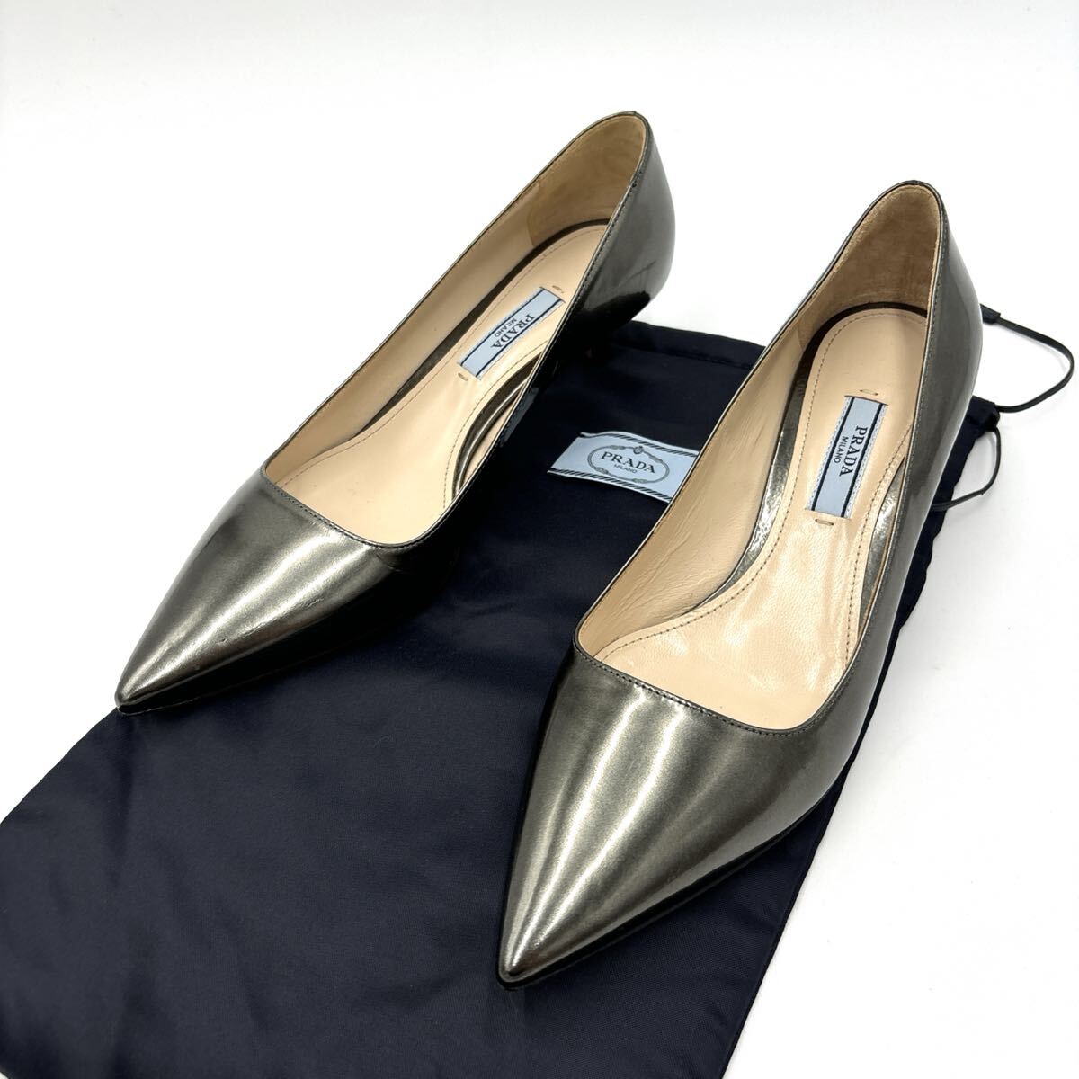 - U * 保存袋付き イタリア製 '高級感溢れる' PRADA プラダ 本革 エナメルレザー ヒール / パンプス EU37.5 23.5~24cm レディース シューズ