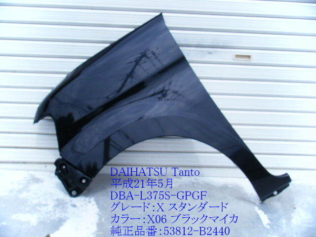 > ◆L375S ダイハツ タント 左 フロントフェンダー X06 ブラックマイカ 53812-B2440【個人様宅発送不可】 [13857]
