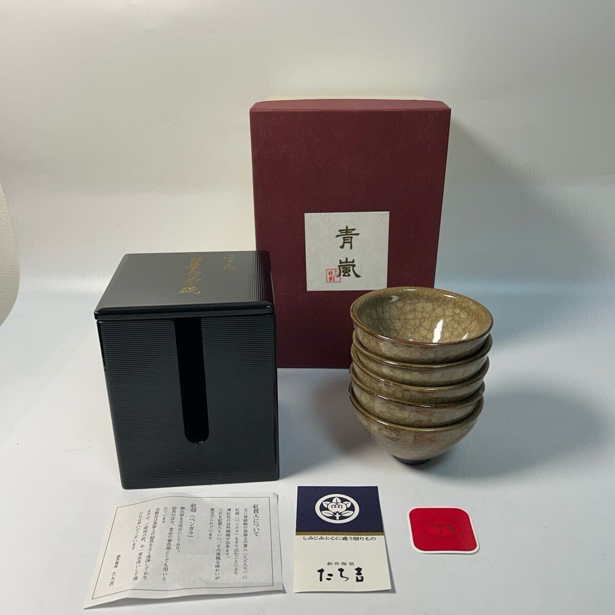 > お茶呑茶碗 五客セット 碗筒付き 利宗窯 古川利男 氷裂貫入 浮き花 たち吉 青嵐 京焼 茶器 茶道具 和食器 湯呑 湯飲み ミ16