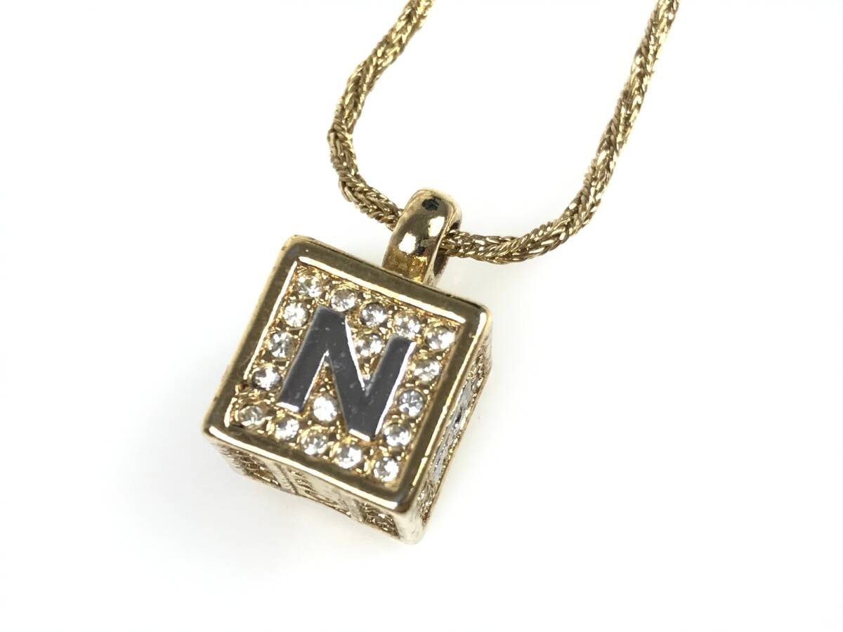 > ニナリッチ NINA RICCI ロゴ ラインストーン キューブ スクリューチェーン ネックレス ペンダント ゴールドカラー YAS-12198
