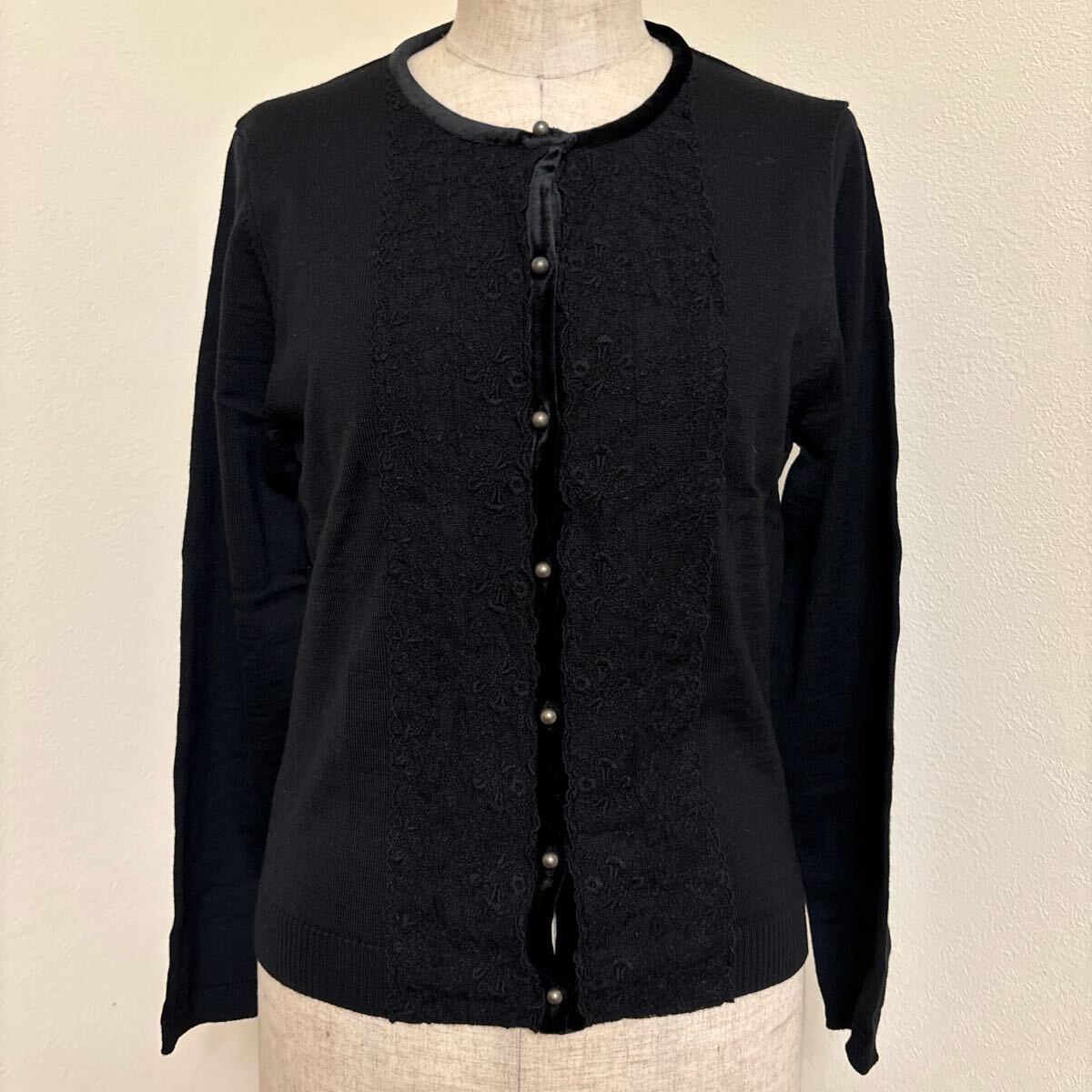 - ☆ 自由区 レース×ベルベットカーディガン パールボタン 黒 Mサイズ 上品
