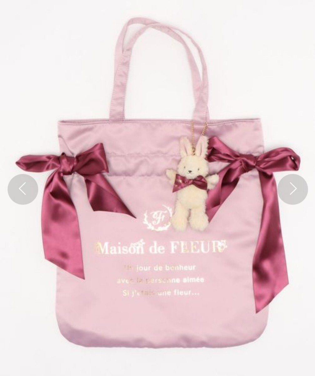- ☆ 新品!メゾンドフルール ラビットチャーム付きダブルリボントートバッグ♪ ピンク色 Maison de FLEUR うさぎ 巾着トートバッグ 激レア!