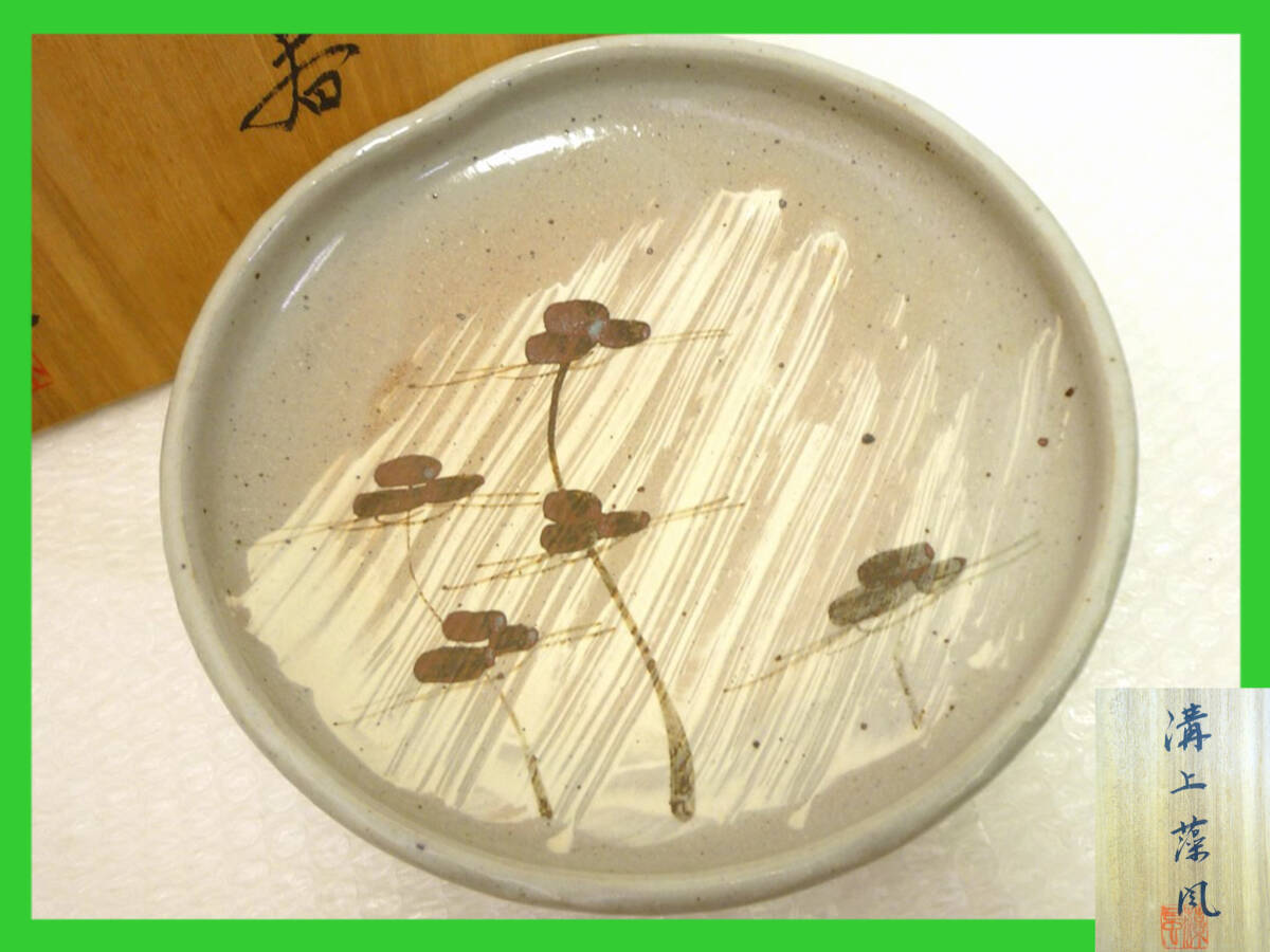 > 未使用 唐津焼 溝上藻風 唐津絵刷毛目 お菓子器 お鉢 お皿 皿 和食器 共箱 桐箱 銘有 茶道具 趣 逸品 在銘 骨董 座敷 和室 古風 必見③