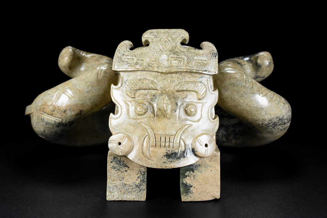 - ▽鴻▽ 和田玉製 細密彫 雙尾龍 置物 古賞物 中国古玩 中国古美術