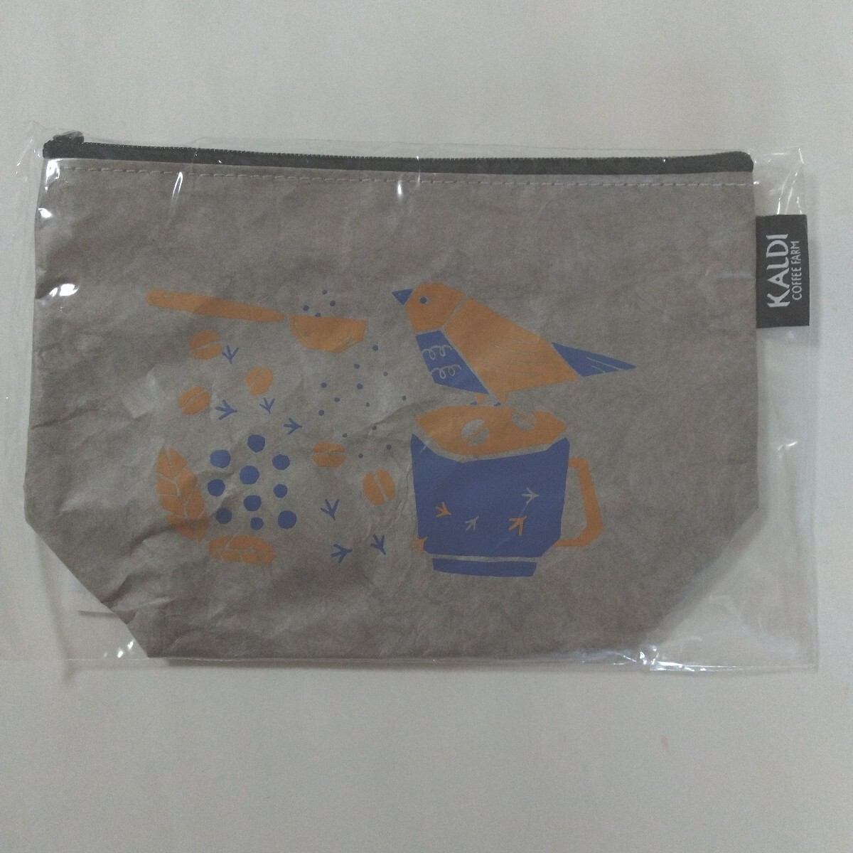- ☆KALDI カルディ オリジナル クラフトポーチ グレー 小鳥 ノベルティ 送料無料☆