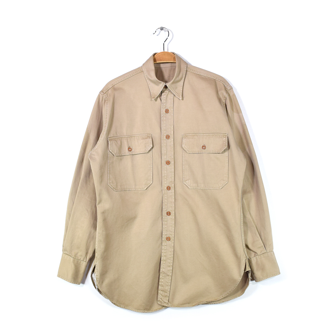 > 【送料無料】40s 米軍 U.S. ARMY ヴィンテージ コットンシャツ チノシャツ カーキ ミリタリー マチ付き メンズS相当 古着 @CA1450