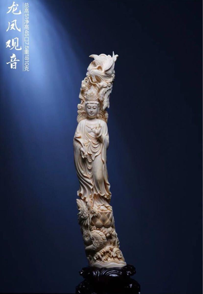 - 天然マンモス牙美しい手作り彫刻龍鳳観音 置物