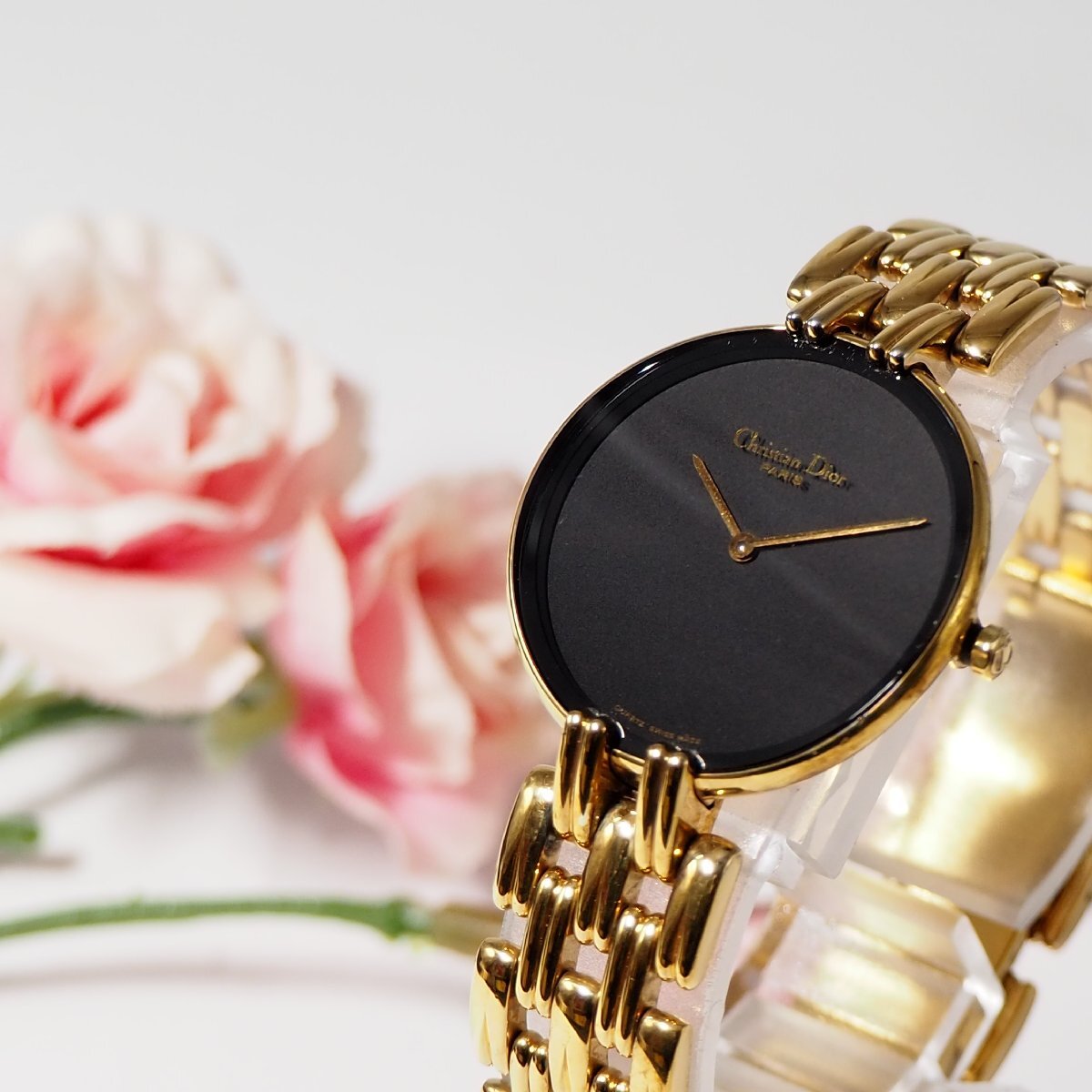 ★★★★ 美品 クリスチャンディオール DIOR バギラ ブラックムーン レディース 腕時計 ゴールド F653★★★★
