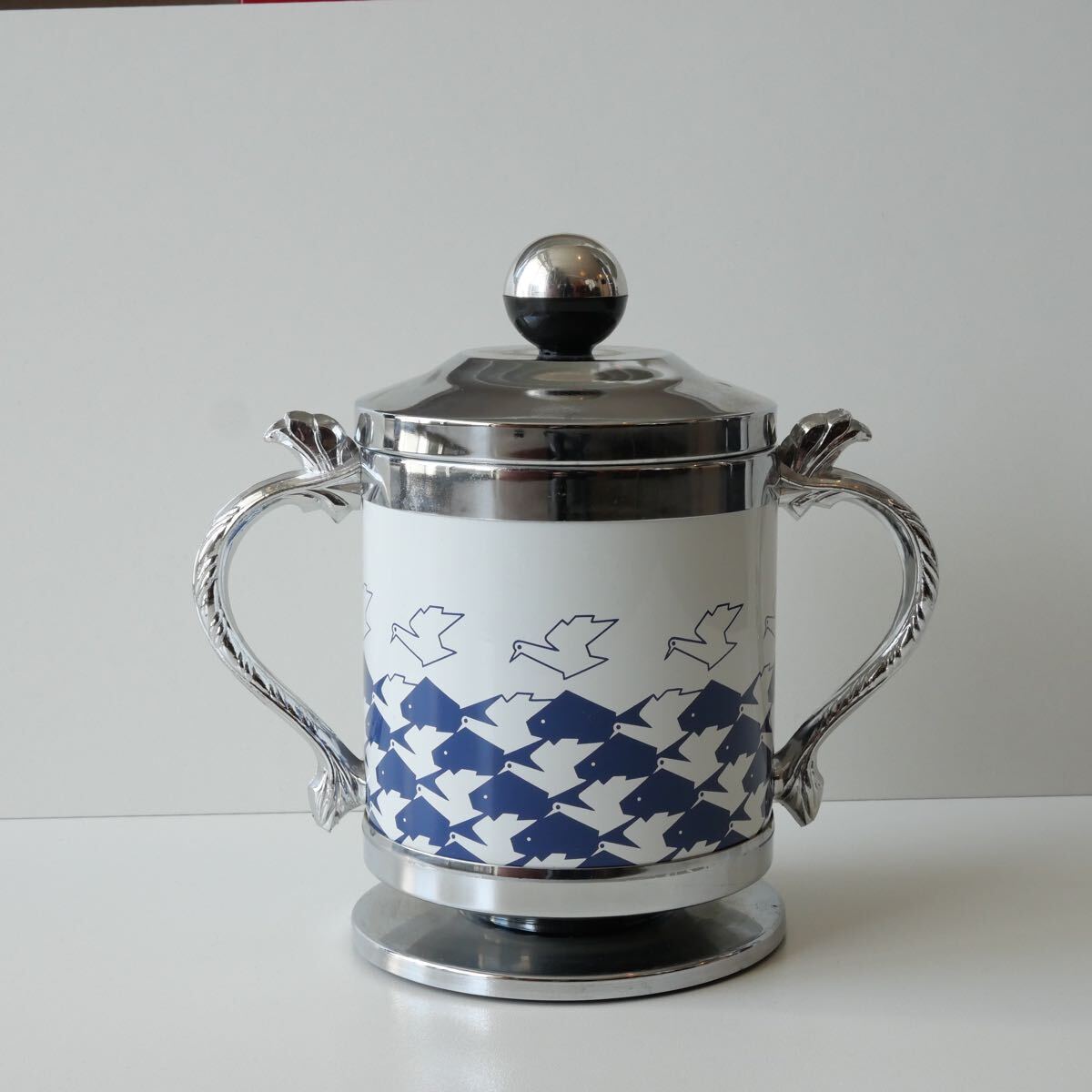 - 鳥と魚柄の小物入れ アイスペール昭和レトロポップ古道具ディスプレイデザイン