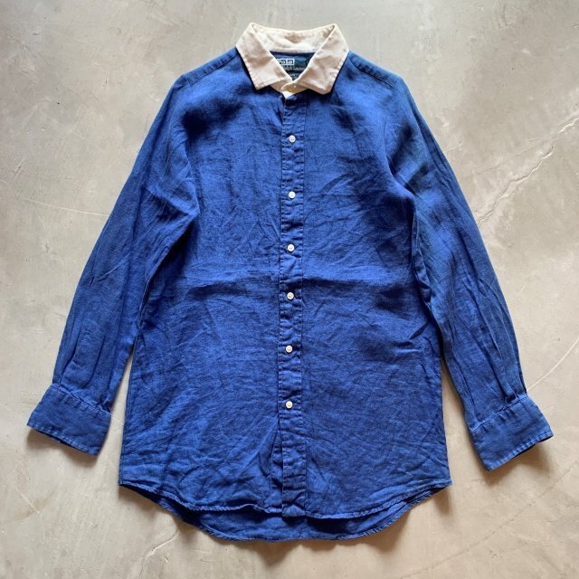 - 【Ladies】SALE!! リサイズ Ralph Lauren ラルフローレン 長袖リネンシャツワンピース 青■ビンテージ アメリカ古着 レディース ポロ