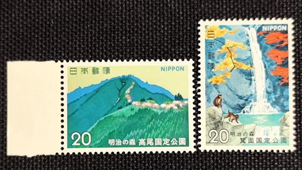 > [25040453]【国定公園 明治の森 高尾・明治の森箕面】単片2種「高尾山・箕面の滝」20円×2 1973年発行 美品